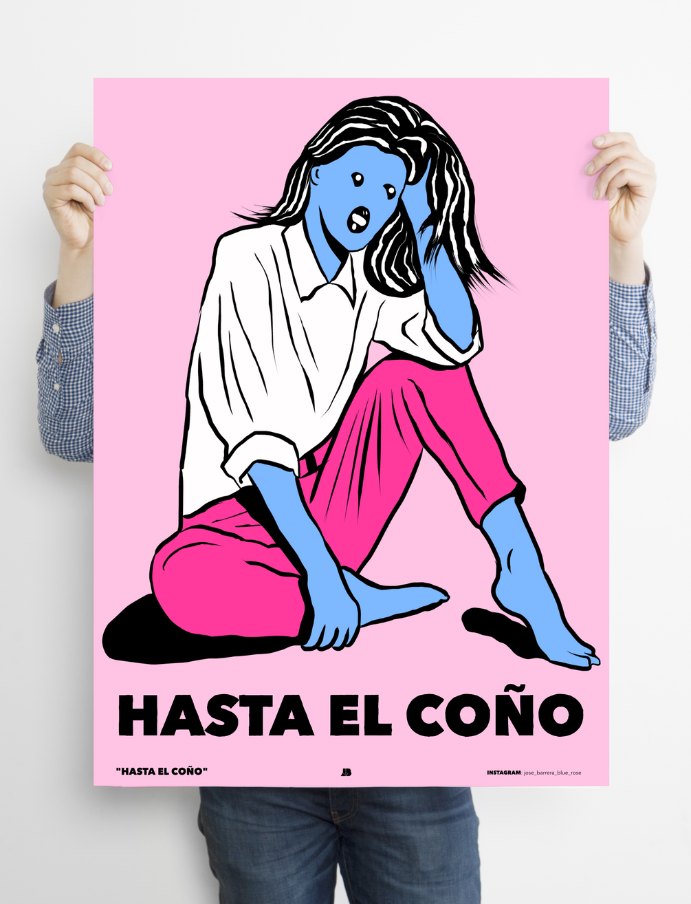 "Hasta el coño", it is a Spanish expression that means to be fed up with everything. It is used a lot, especially when you are really angry. Here we have a lady who is "Hasta el coño" with everything.